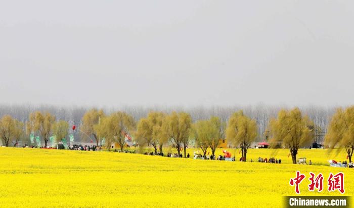 圖為彭澤縣棉船鎮萬畝油菜花進入盛花期,吸引眾多游客前來踏青賞花。彭琴 攝