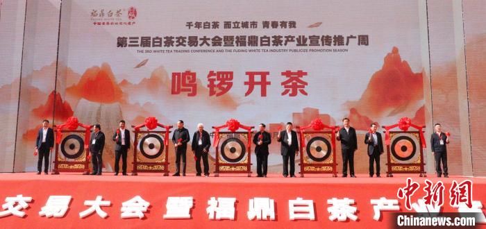 鳴鑼“開茶開市”,開啟第三屆白茶交易大會暨福鼎白茶產業(yè)宣傳推廣周序幕。 林榕生 攝