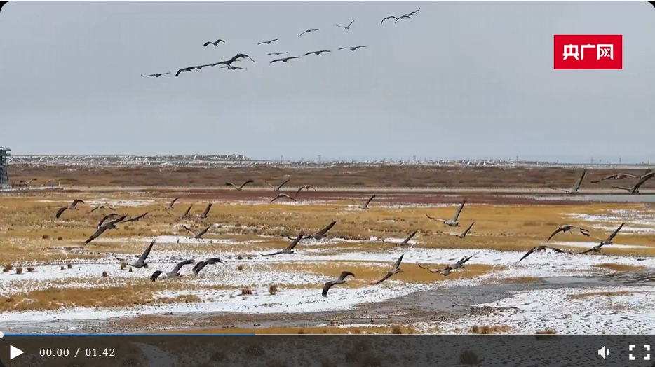 千只灰鶴在嘉峪關(guān)草湖國(guó)家濕地公園振翅高飛(央廣網(wǎng)發(fā) 嘉峪關(guān)市融媒體中心供圖)