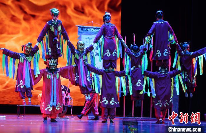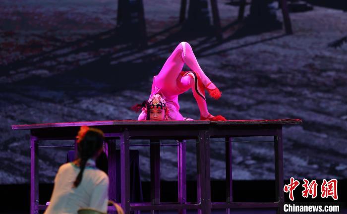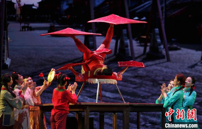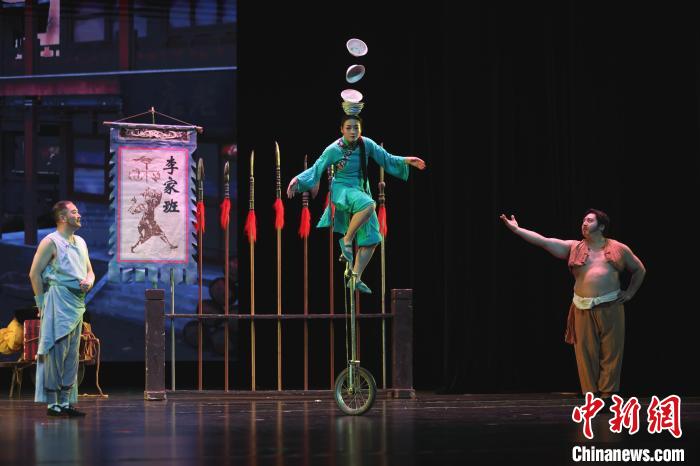 圖為飾演雜技班師娘的演員正在表演。中新社記者 劉占昆 攝