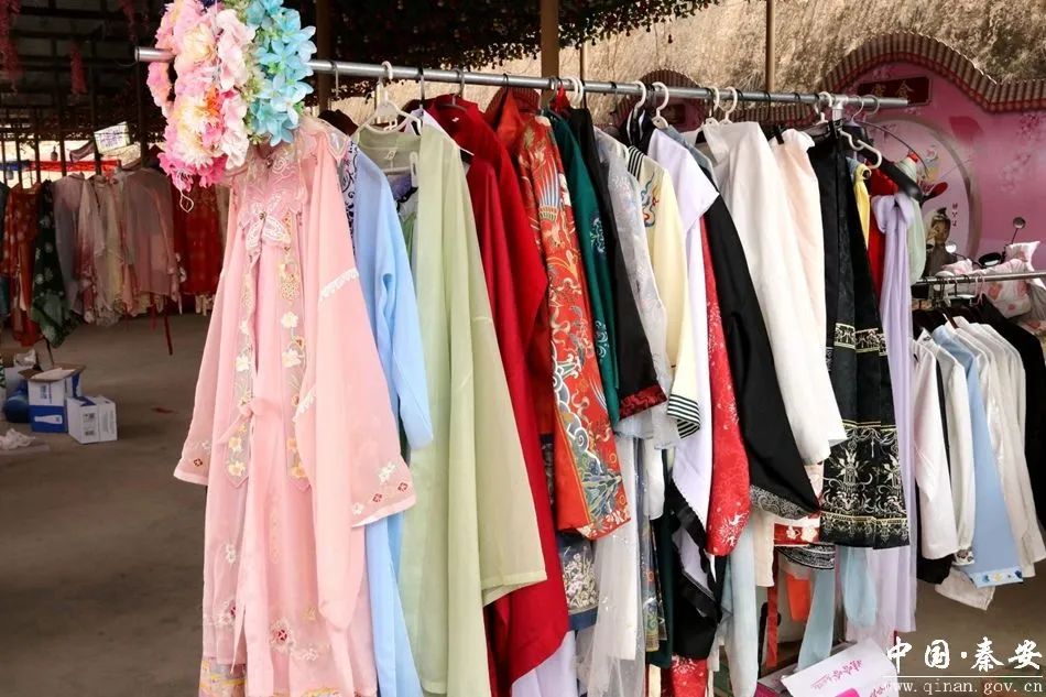 在漢服體驗(yàn)區(qū),游客們穿上精美的漢服,或手持團(tuán)扇,或腰掛香囊,在古桃花林間拍照留念,仿佛穿越回了古代。攤主胡惠告訴記者:“我覺得桃花會(huì)這樣的活動(dòng)非常適合推廣漢服文化,我們這里有各種不同款式的漢服,從唐代的齊胸襦裙到宋代的褙子,再到明代的馬面裙,應(yīng)有盡有。而且每套漢服都經(jīng)過精心挑選,面料舒適,做工精細(xì)。除了漢服,我們還提供頭飾、發(fā)簪、團(tuán)扇等配飾,讓游客可以全方位感受漢服的魅力。”