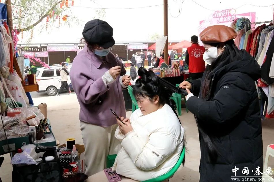 文創(chuàng)攤位前同樣人氣爆棚。精美的桃花折扇、雕花書簽、桃花傘,印著大地灣文化IP“小祖宗”的帆布包,寓意吉祥的桃木雕刻,以及麥稈編、剪紙等非遺手工藝品,每件都承載著秦安文化底蘊(yùn)。攤主熱情地為顧客介紹產(chǎn)品的來歷與寓意,偶爾還會(huì)講述一些背后的創(chuàng)作背景故事,引得大家頻頻點(diǎn)頭稱贊。