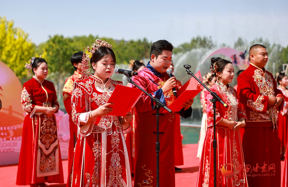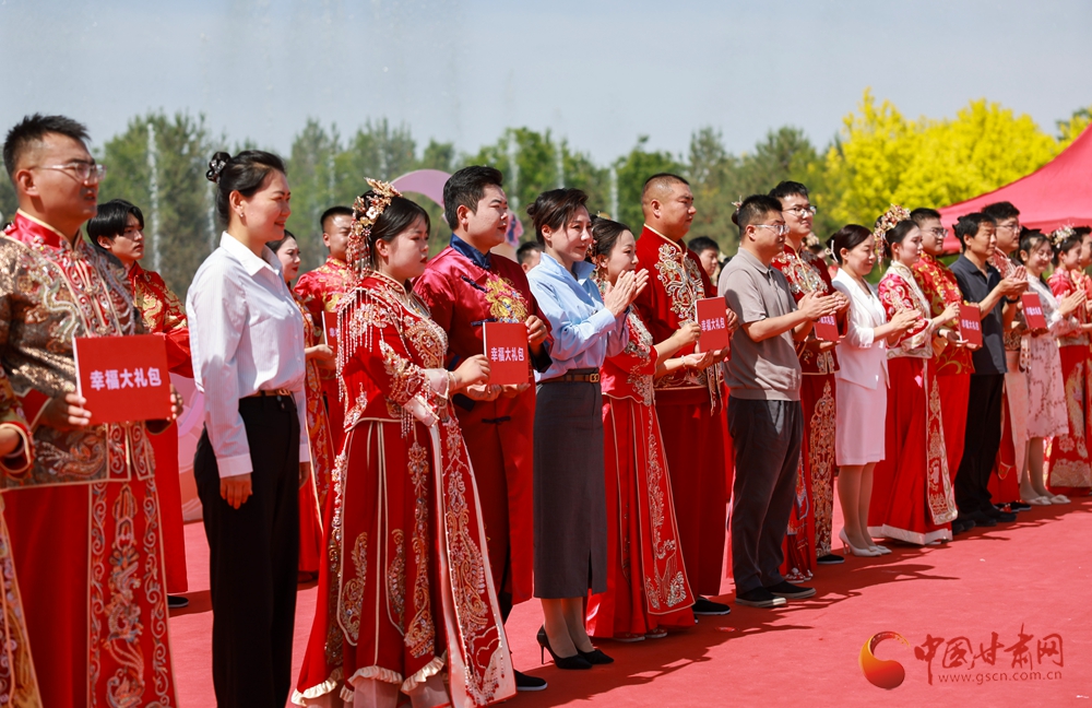 5月20日,酒泉市金塔縣“踐行新風 青年先行”集體婚禮在文化廣場舉辦,來自全縣各行各業的20對新時代青年代表參加,在親朋好友和現場觀眾的見證下喜結良緣,共同開啟幸福人生新旅程。