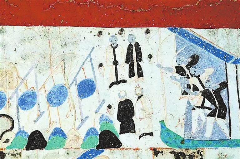 對于那些生活在河流沿岸的人們來講,游泳這項技能成為必要的生存本領被傳承下來了。在古代,游泳也是一項軍事技能。兵書《六韜·奇兵篇》就把“越深水,渡江河”稱為“奇技”。在莫高窟第12窟壁畫中有一幅“渡河圖”:畫面描繪的是一群士兵與他們的戰馬正在渡河的場景。其實,到了隋唐時期,游泳技術已經十分成熟,出現了豐富多彩的泳姿:仰泳、潛泳、自由泳等都在敦煌壁畫中有所呈現。到了宋元時期,我們今天所知道的泳姿基本全部出現,甚至還有一些游泳健將在水上進行炫技表演呢!真的是“不管風吹浪打,勝似閑庭信步”。在莫高窟第257窟壁畫中有一幅“游泳嬉戲圖”。
