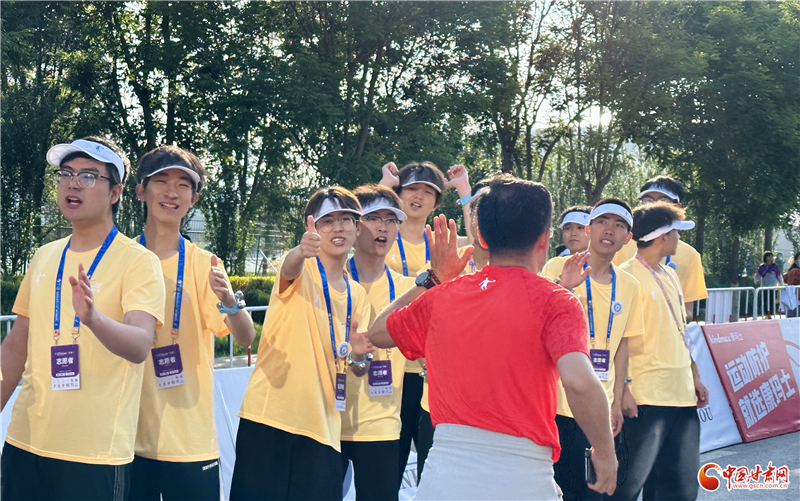 當發令槍響,志愿者們揮舞著手中的旗幟,齊聲吶喊“加油”,聲浪如潮,點燃了整個賽場的激情。