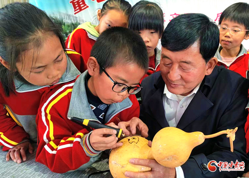 “傳承非遺文化,關鍵在于培養下一代的興趣。”賈永飛深知這一點。從2005年到2015年,他為臨澤縣的中小學生進行葫蘆烙畫的兼職培訓,培訓人數達7000多人。2019年,臨澤縣第三中學開設了非遺“葫蘆烙畫”工作室,將“葫蘆烙畫”引進第二課堂,賈永飛為學生傳授傳統文化工藝,烙畫社團也成了該校的特色社團之一,受到了學生們的喜愛。