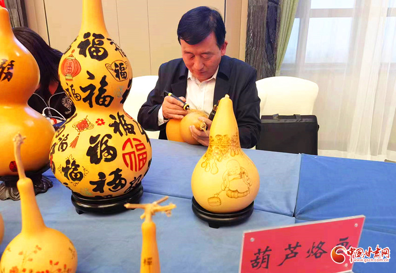 葫蘆諧音“福祿”,寓意平安吉祥、健康長壽。經過多年的堅持和努力,賈永飛創作了一批成熟的烙畫葫蘆作品,2015年賈永飛被評為張掖市非物質文化遺產代表性傳承人。