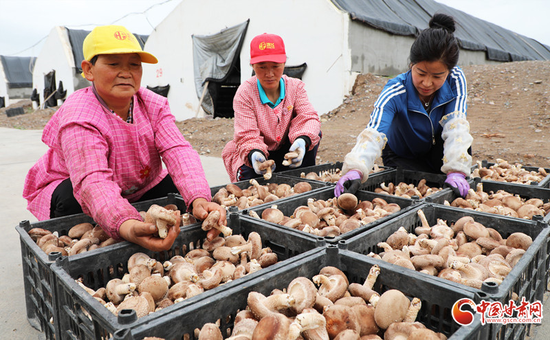 6月26日,在民樂工業園區的一家食用菌生產溫室內,工人們正在采摘成熟的香菇和靈芝,包裝完成后將運往青海、寧夏、新疆等地銷售。