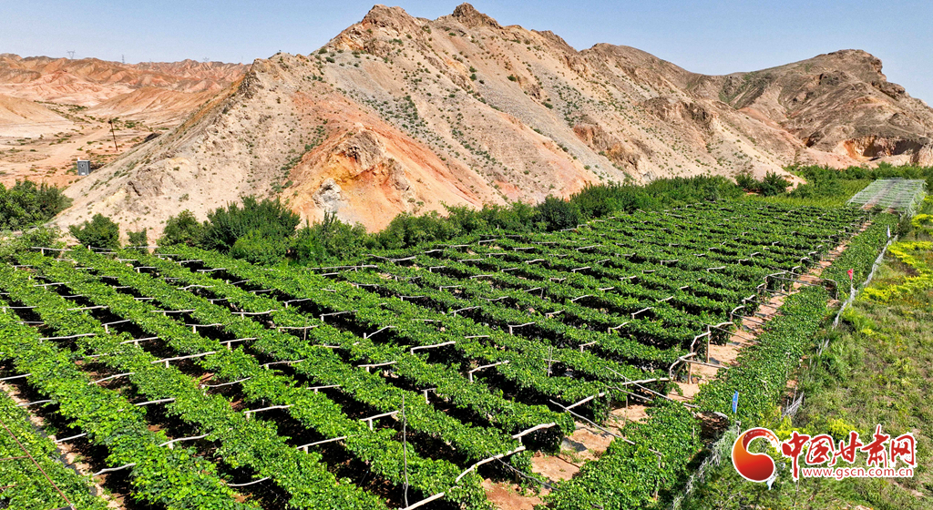 位于巴丹吉林沙漠南緣的臨澤縣,境內沙漠、戈壁面積占三分之二以上。近年來,當地采用護、封、造、固等措施進行荒漠綜合治理和實施“三北”工程,營造林木273萬畝,修復退化草地874萬畝。鄰近北部沙漠的板橋鎮積極探索荒漠戈壁上的“綠色革命”,在實施“三北”防護林建設工程的同時大力發展特色林果業,建成1.5萬畝葡萄種植基地,昔日“黃龍”肆虐的北部荒漠區,正在成為綠樹成蔭、果實累累的綠色美麗家園,林果業成為了當地群眾增收致富的主渠道。